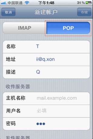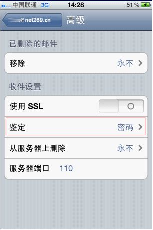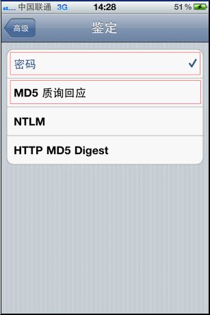 八、iPhone雖然默認(rèn)的鑒定方式是“密碼”,但是實(shí)際上系統(tǒng)中使用apop方式,所以一般用戶設(shè)定好以后無法使用,可以先改變一種鑒定方式(如MD5等)并確定,再選回“密碼”方式,此時的iPhone就可以正常使用了。