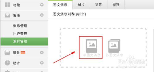 同樣先點(diǎn)擊 =》【素材管理】=》選擇【單圖文編輯】