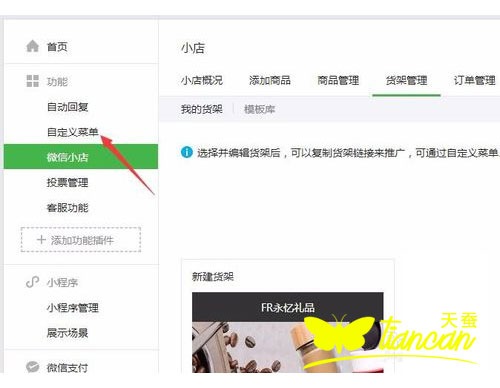 備注:微信小店中有個(gè)貨架功能,可以自定義添加多個(gè)不同的貨架,一個(gè)貨架相當(dāng)于一個(gè)店鋪的首頁(yè)。即來開通了微信小店大家都想通過公眾號(hào)的導(dǎo)航菜單能夠直接訪問到我們的小店,但系統(tǒng)又沒有直接可以開通就會(huì)顯示等功能,需要我們手動(dòng)去添加的,下面我們就來介紹一下,微信公眾平臺(tái)的自定義菜單上如何連接微信小店