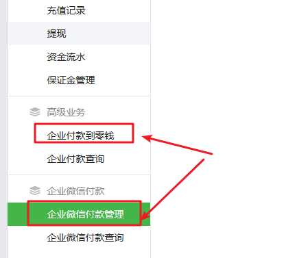 只需在微信支付商戶(hù)平臺(tái),產(chǎn)品中心,開(kāi)通【企業(yè)微信付款】與【企業(yè)付款到零錢(qián)】,如下圖所示: