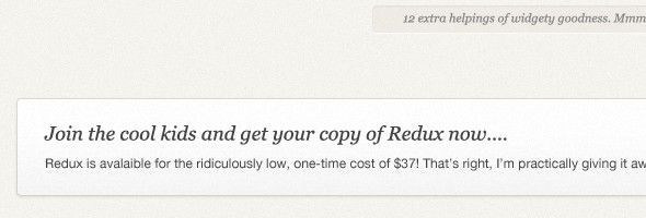 注意觀察Redux暗色背景上的淺色文字,你會發(fā)現(xiàn)它們都被添加上了投影效果?,F(xiàn)在我們可以使用CSS3中的text-shadow屬性來完成文字的投影 設(shè)計(jì),代替了在Photoshop中完成此項(xiàng)工作。而且使用CSS3來給文字添加陰影自由度更高,在瀏覽器支持的情況下,你可以給任意文字添加你想要的陰 影效果。當(dāng)然IE8以下版本的瀏覽器是不支持此項(xiàng)屬性的,這是我們在設(shè)計(jì)中需要注意的地方。另外,和前面提到的其它設(shè)計(jì)細(xì)節(jié)一樣,陰影的效果也要足夠柔 和,不可過于強(qiáng)烈,不然很容易讓整個設(shè)計(jì)看起來有一種臟臟的感覺,顯得不夠精致。