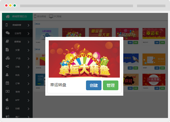 大轉(zhuǎn)盤 刮刮卡 幸運(yùn)卡片 微簽到 分享助力 微紅包 合體紅 微調(diào)研 微預(yù)約 包微相冊(cè) 更多>>