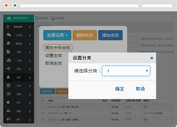 自主添加商城會(huì)員 會(huì)員分組 營(yíng)銷信息群發(fā) 會(huì)員積分