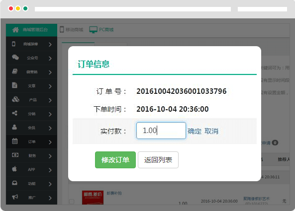 訂單價(jià)格修改 收件地址修改 訂單狀態(tài)修改 運(yùn)費(fèi)修改 導(dǎo)出訂單